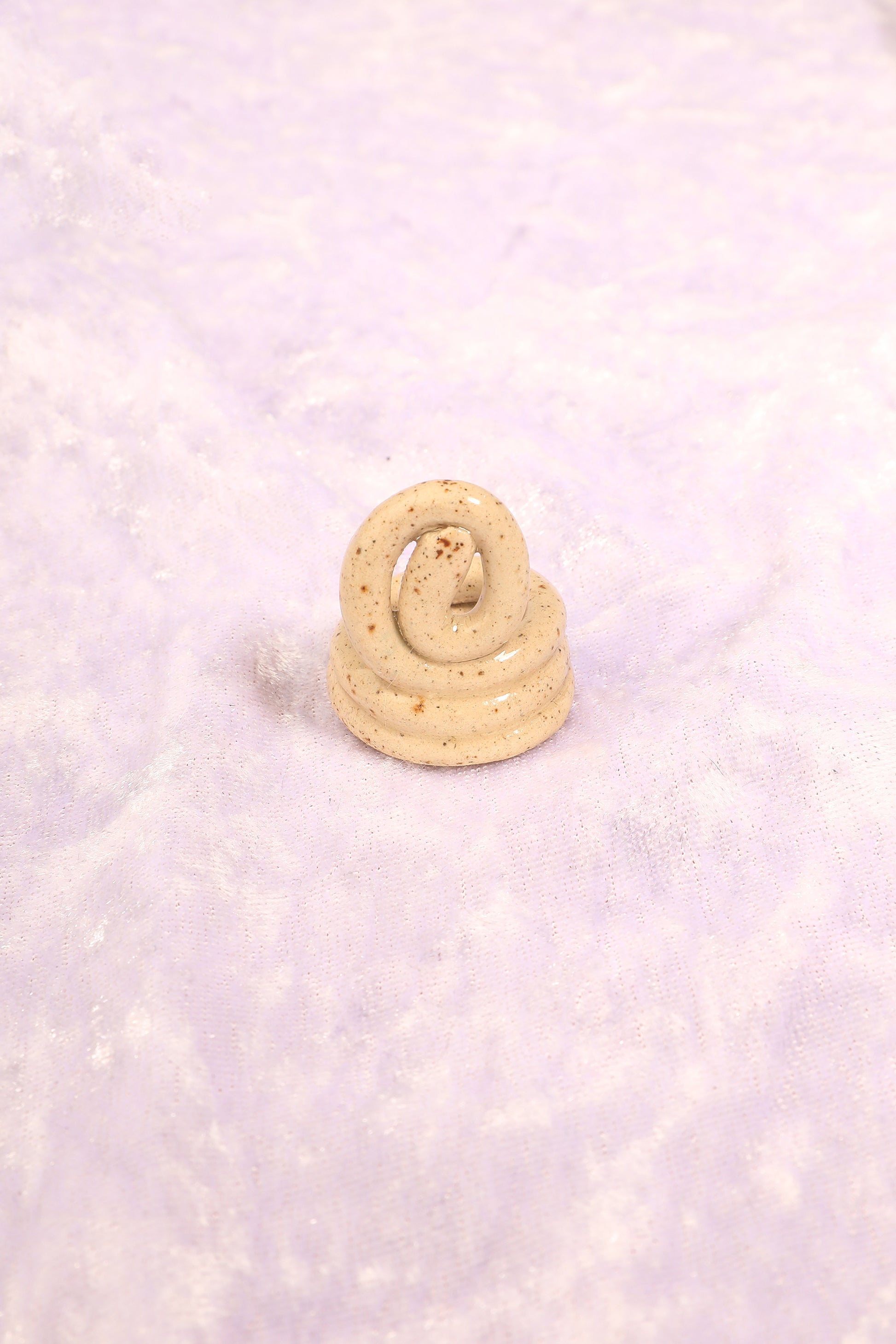 La bague colombin serpent semble avoir été façonnée dans un souffle ancien, comme si un petit reptile malicieux avait choisi de s’enrouler autour de votre doigt pour vous tenir compagnie. Son corps, modelé en colombin de terre blanche et recouvert d’un émail transparent, garde la trace de la main qui l’a façonné et lui donne cette allure à la fois brute et délicate.