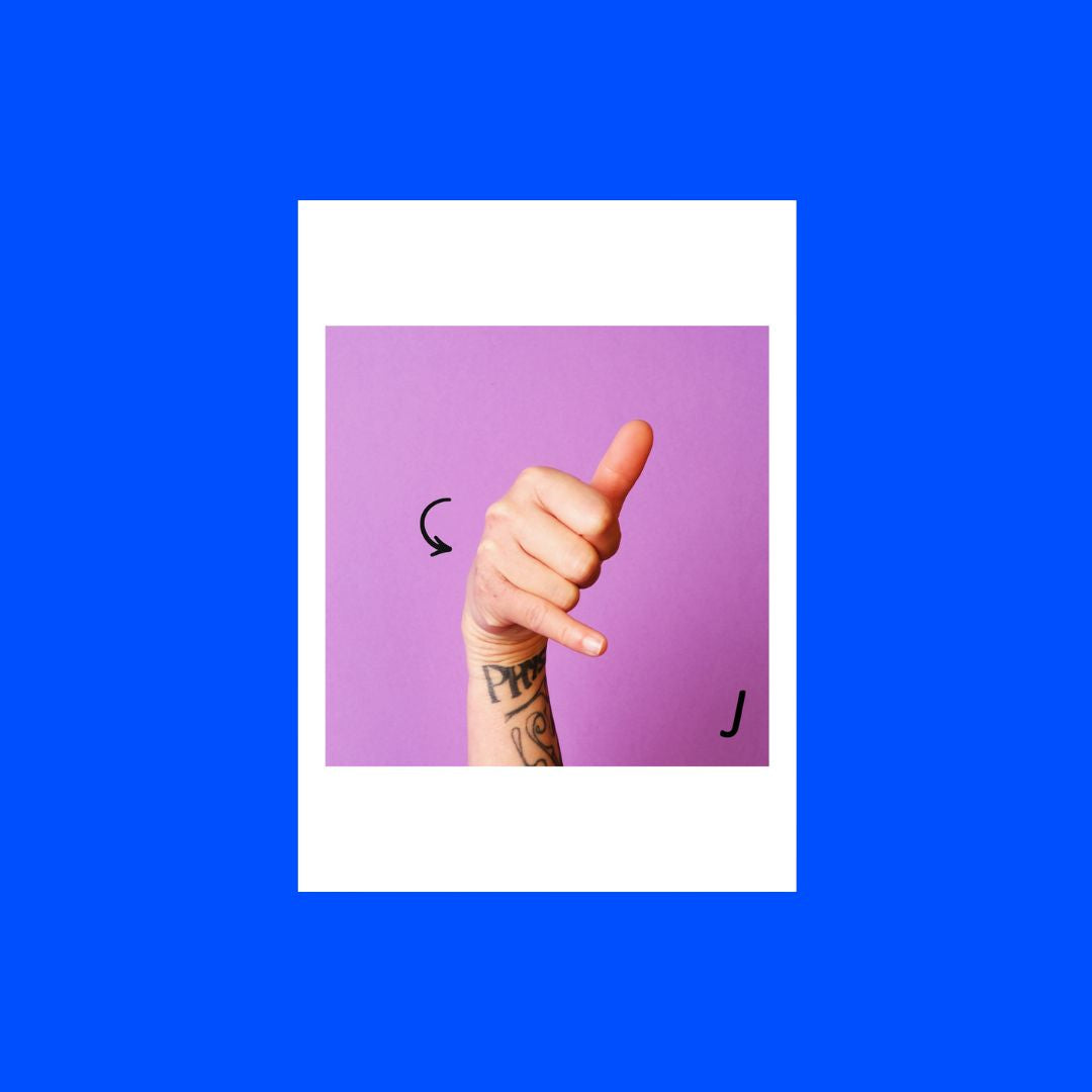 Visuel : Photographie originale de Marion Grassart – main formant la lettre J en langue des signes francophone belge