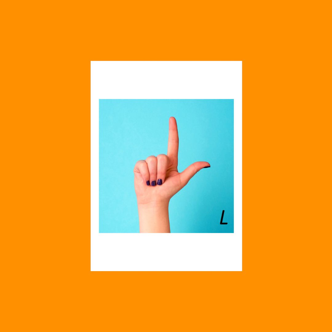 Visuel : Photographie originale de Marion Grassart – main formant la lettre L en langue des signes francophone belge