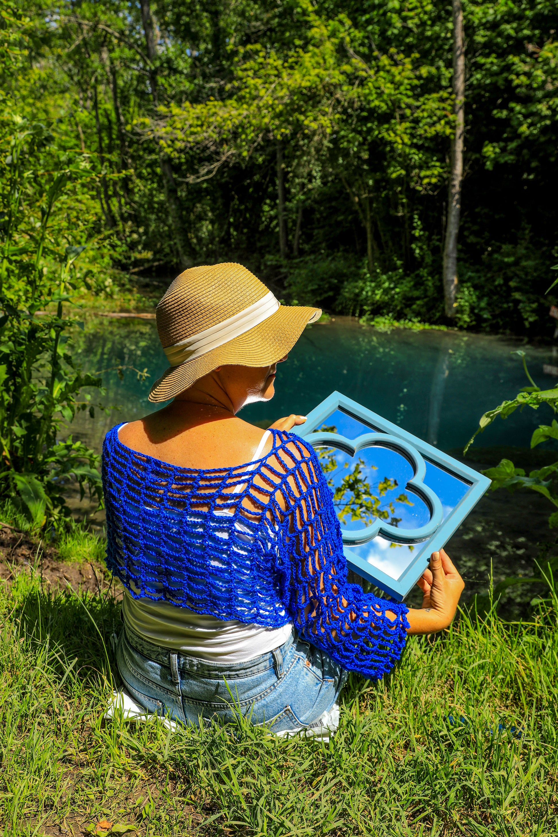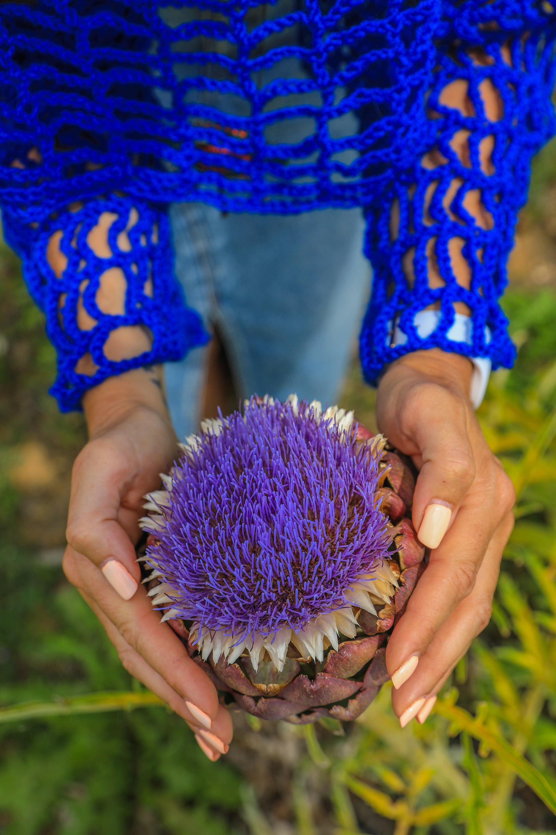 Le Crop Top Bleu Indigo à manches longues de la série "OPEN" est la caresse lumineuse qui manquait à votre garde-robe ! Crocheté avec patience et malice, il enveloppe vos bras d’un souffle coloré, rappelant les après-midis d’été qui s’étirent doucement vers la nuit. Son bleu indigo vibrant réveille l’enfant intérieur et diffuse cette énergie joyeuse que la créatrice a voulu partager avec vous.