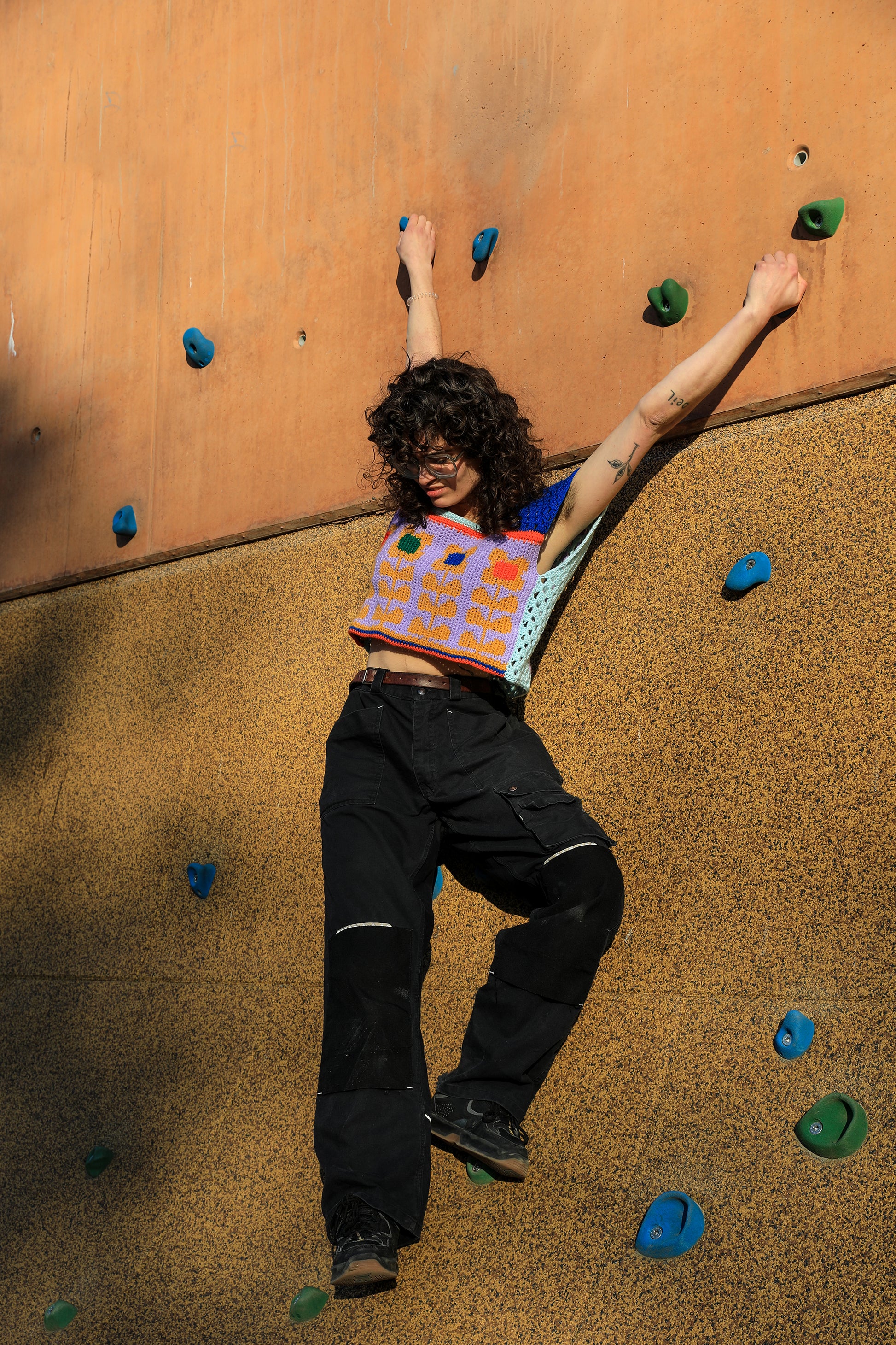 Le Croptop fleurs de la série "PIXEL" est la touche de couleur éclatante qui manquait à votre dressing ! Crocheté avec amour, il apporte à chaque tenue un esprit enfantin et la dose de bonne humeur que sa créatrice à voulu partager avec vous !