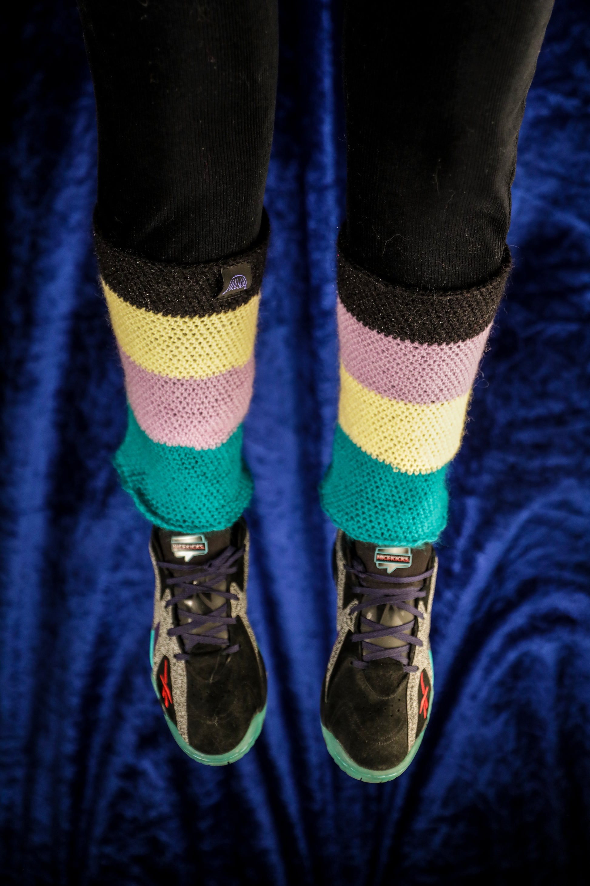 Ces guêtres sont un jeu d' équilibre entre l' ombre et la lumière, entre la douceur des tons pastel et l' intensité d' un noir profond. Elles habillent les chevilles comme un poème visuel, à la fois graphique et rêveur, et insufflent une touche de fantaisie dans ton quotidien.