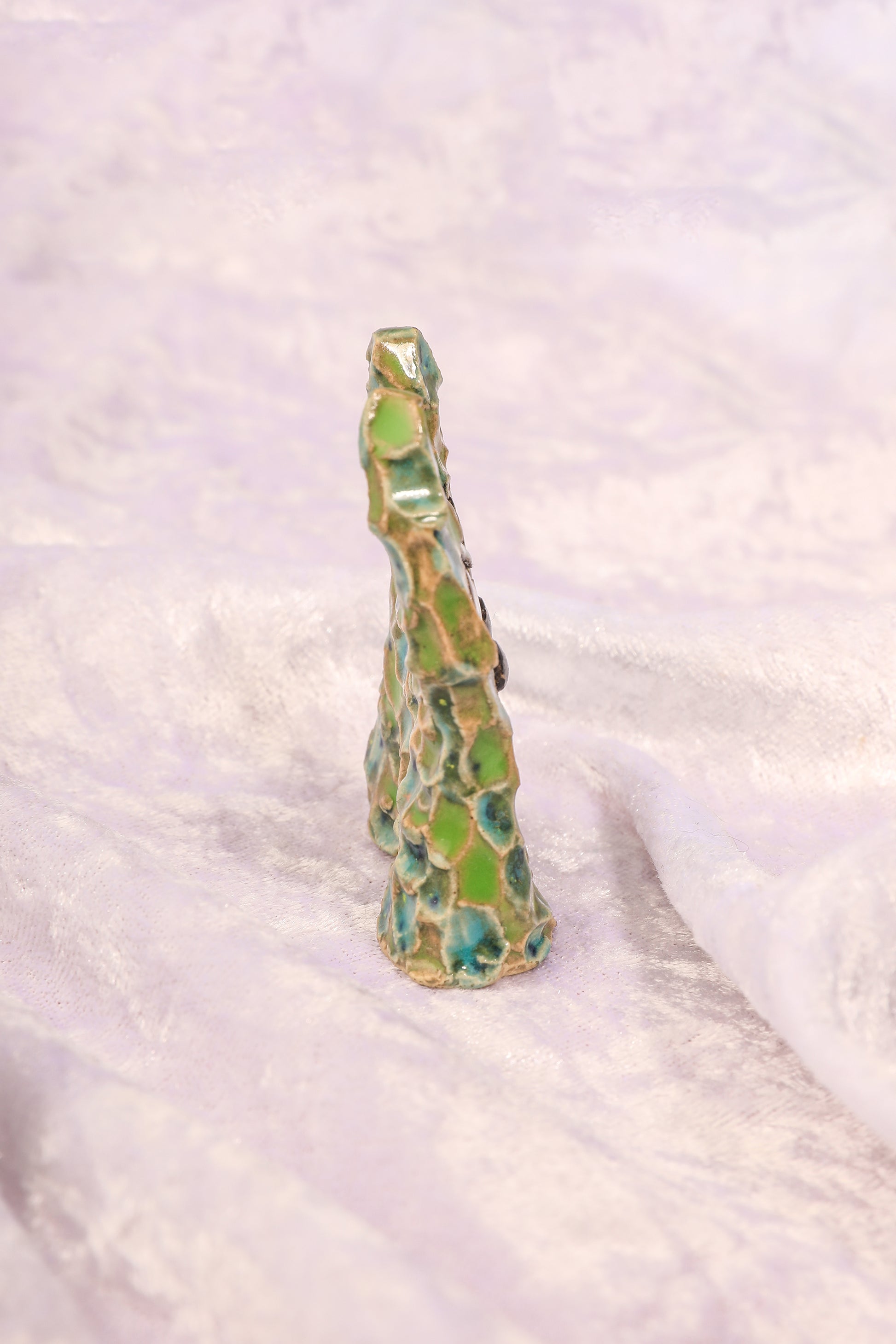 Cette petite créature semble être sortie d’un recoin secret d’une forêt enchantée. Son corps vert tendre et ses yeux malicieux évoquent les feuilles et la mousse baignées par la lumière, tandis que ses petites touches de brun rappellent la terre nourricière où naissent les secrets de la nature. Les détails délicats de Korogi lui confèrent une présence légère et presque magique, comme s’il pouvait veiller sur vos trésors et capter les petits moments de bonheur.