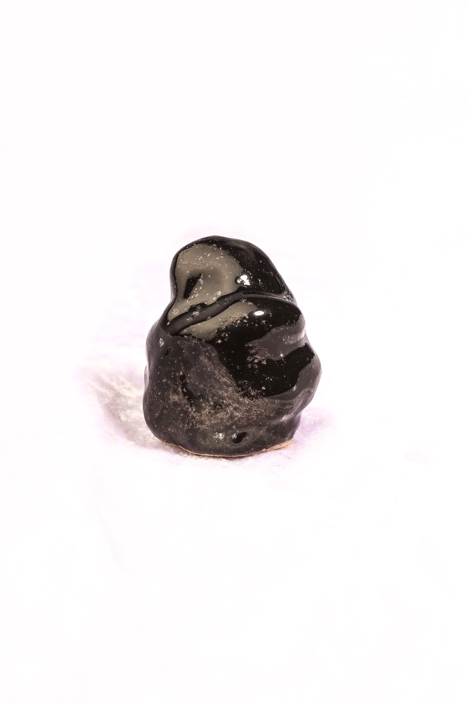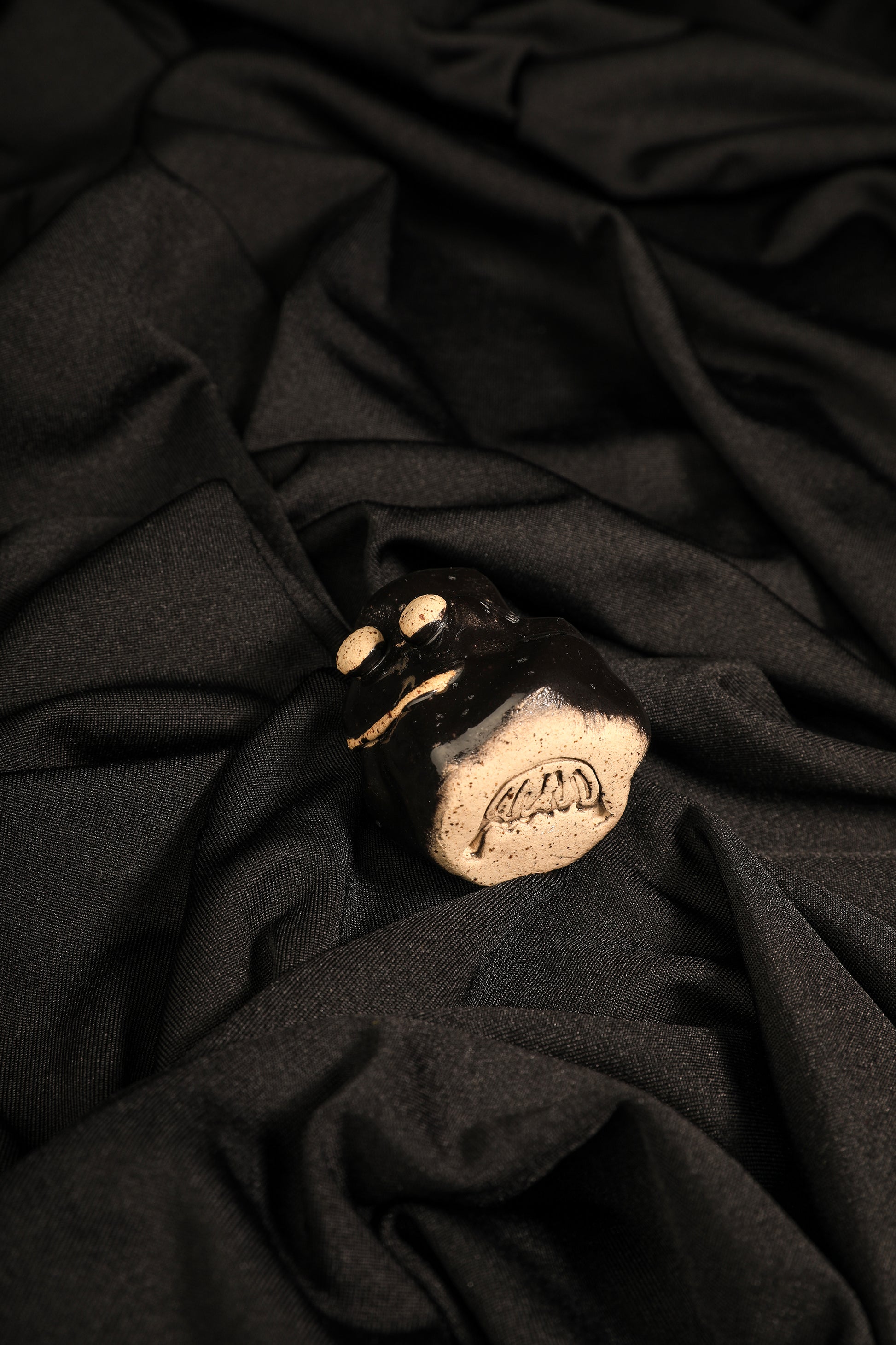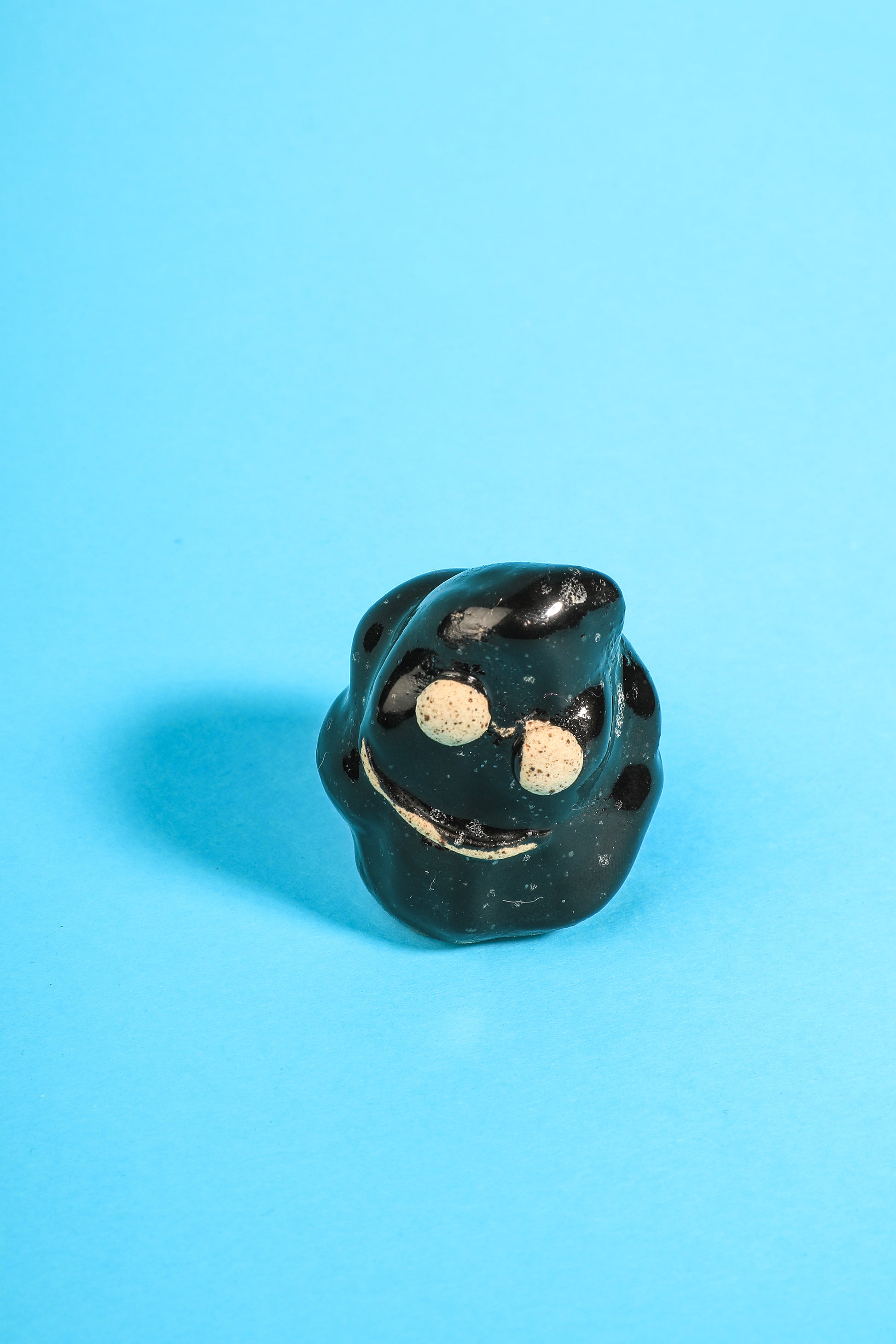 Ce petit nuage noir souriant semble s’être posé tout droit d’un ciel mystérieux, non pas pour effrayer, mais pour veiller avec douceur. Son corps sombre et lisse évoque la profondeur des orages, tandis que son sourire discret et ses yeux blancs apportent une lumière rassurante. À la fois singulier et attachant, il devient un compagnon protecteur, un grigri poétique qui réunit beauté et bienveillance.