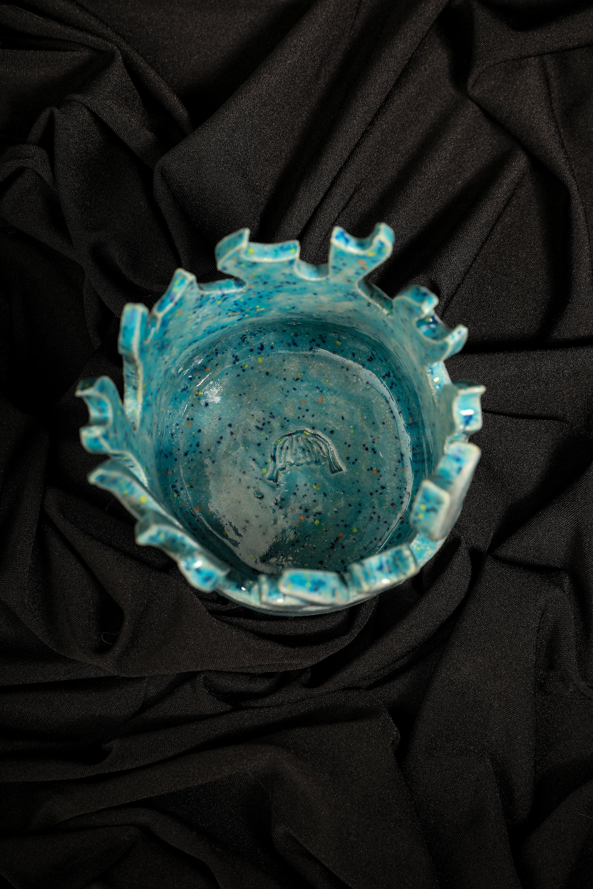 Composition : Terre bleu / émaux bleu et bleu moucheté aux teintes flamboyantes