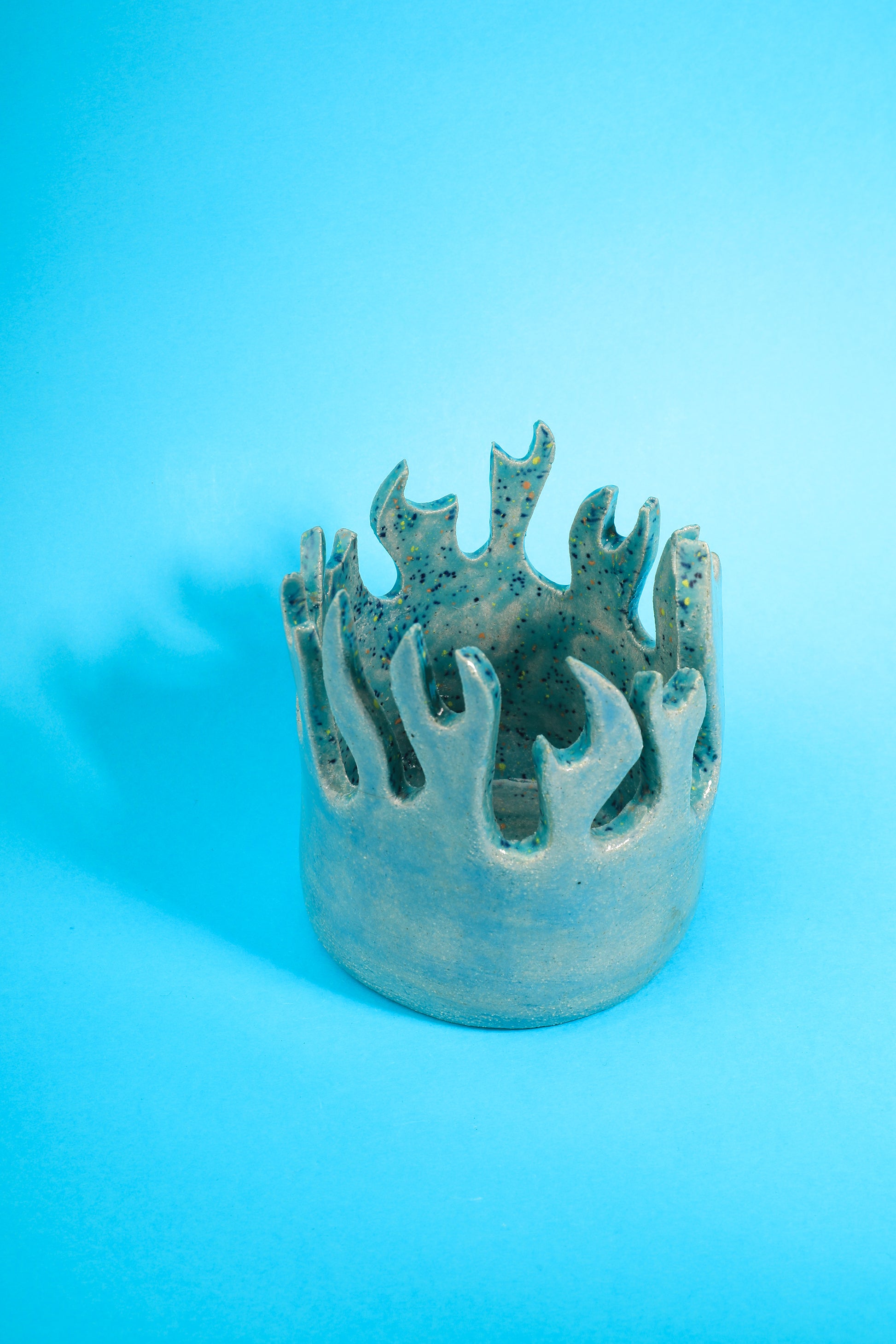 Ce pot flamboyant semble avoir capturé l'essence même d'une flamme. Ses lignes incandescentes et son design inspiré du feu rappellent la danse des braises et l'énergie vive qui transforme tout sur son passage. Pensé pour accueillir une bougie, il se révèle alors dans toute sa puissance : la lumière joue avec ses formes et ranime l'élément du feu, symbole de force, de passion et de renaissance.