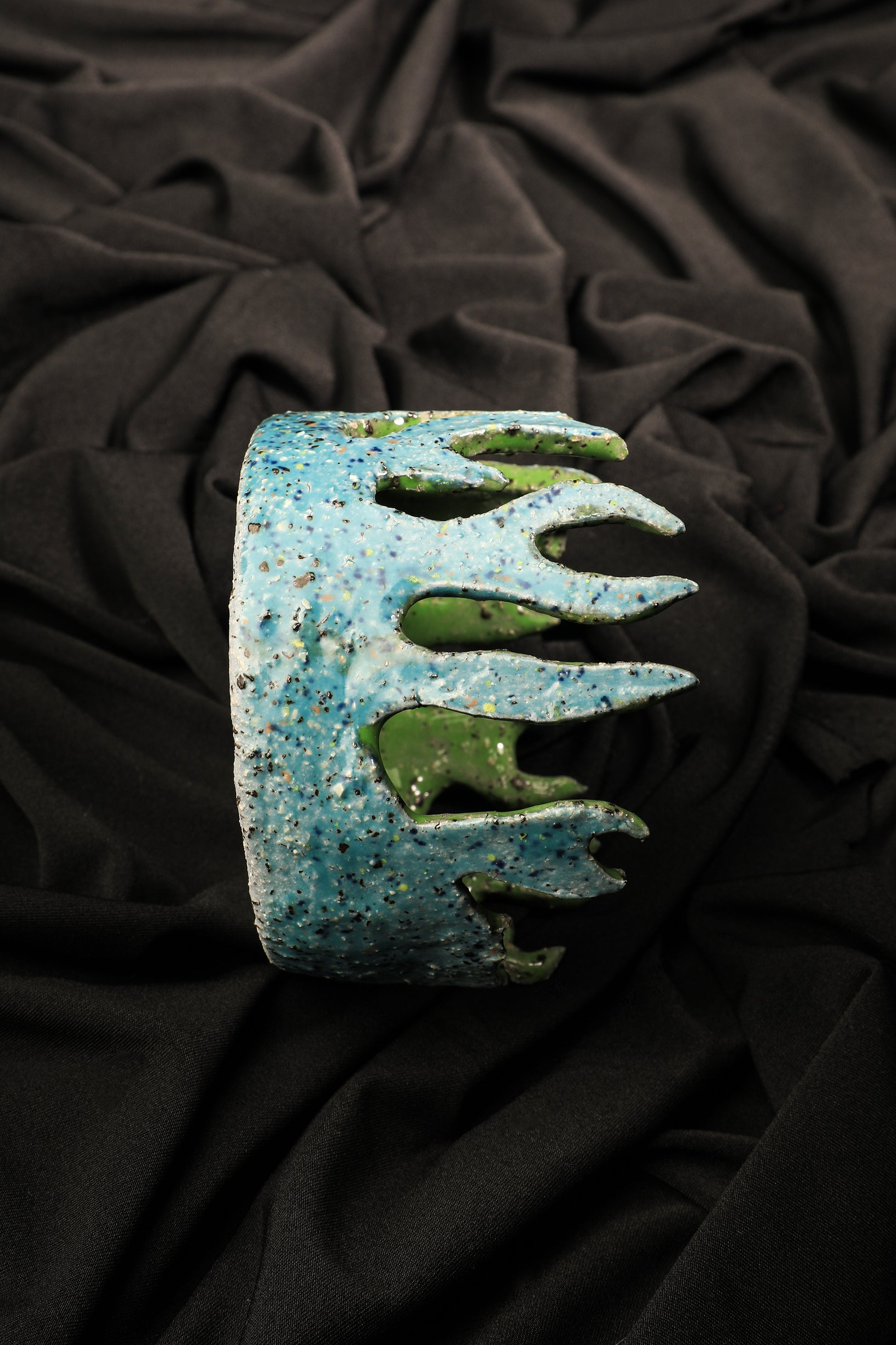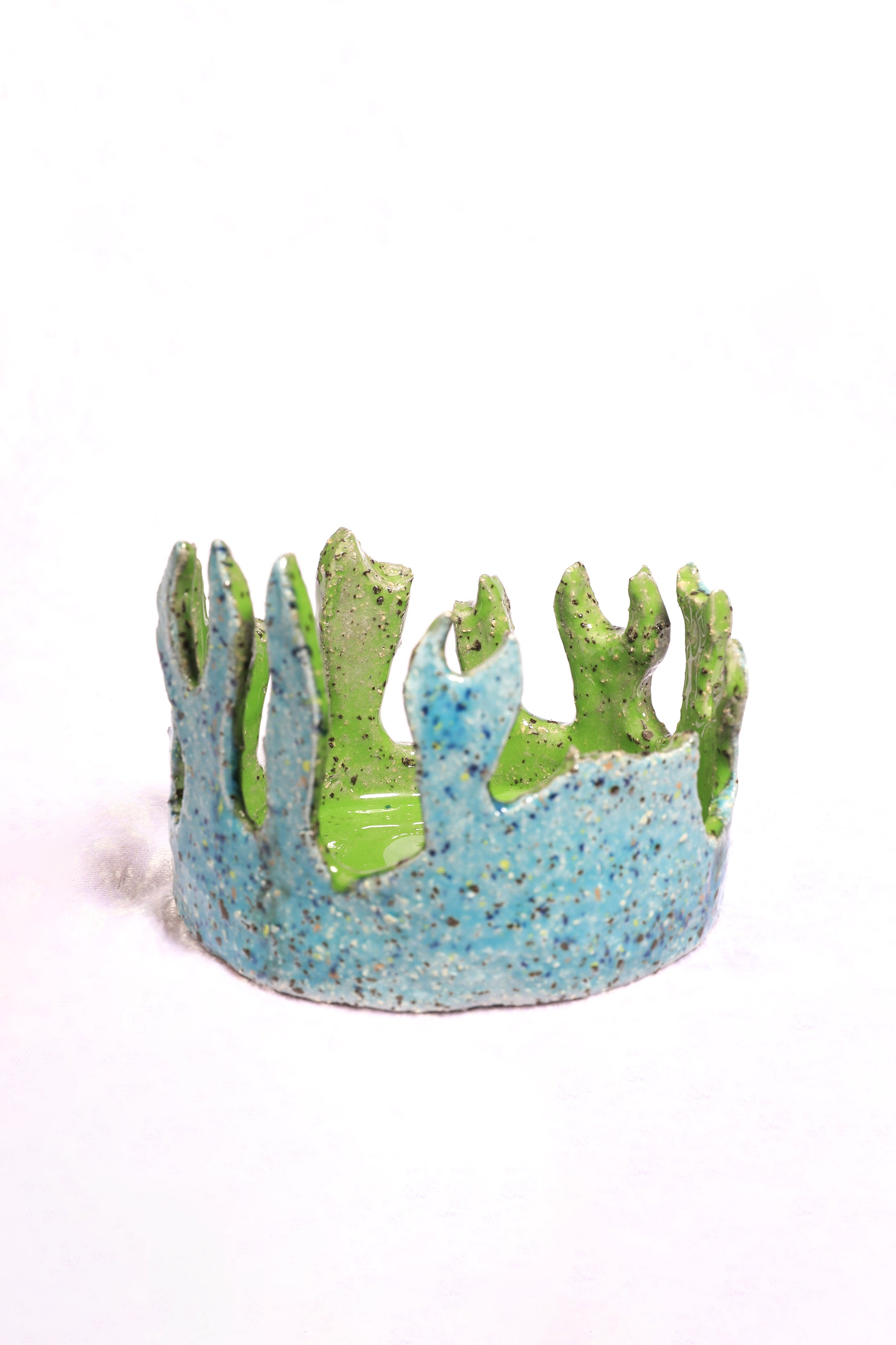 Composition : Terre bleu / émaux bleu moucheté et vert