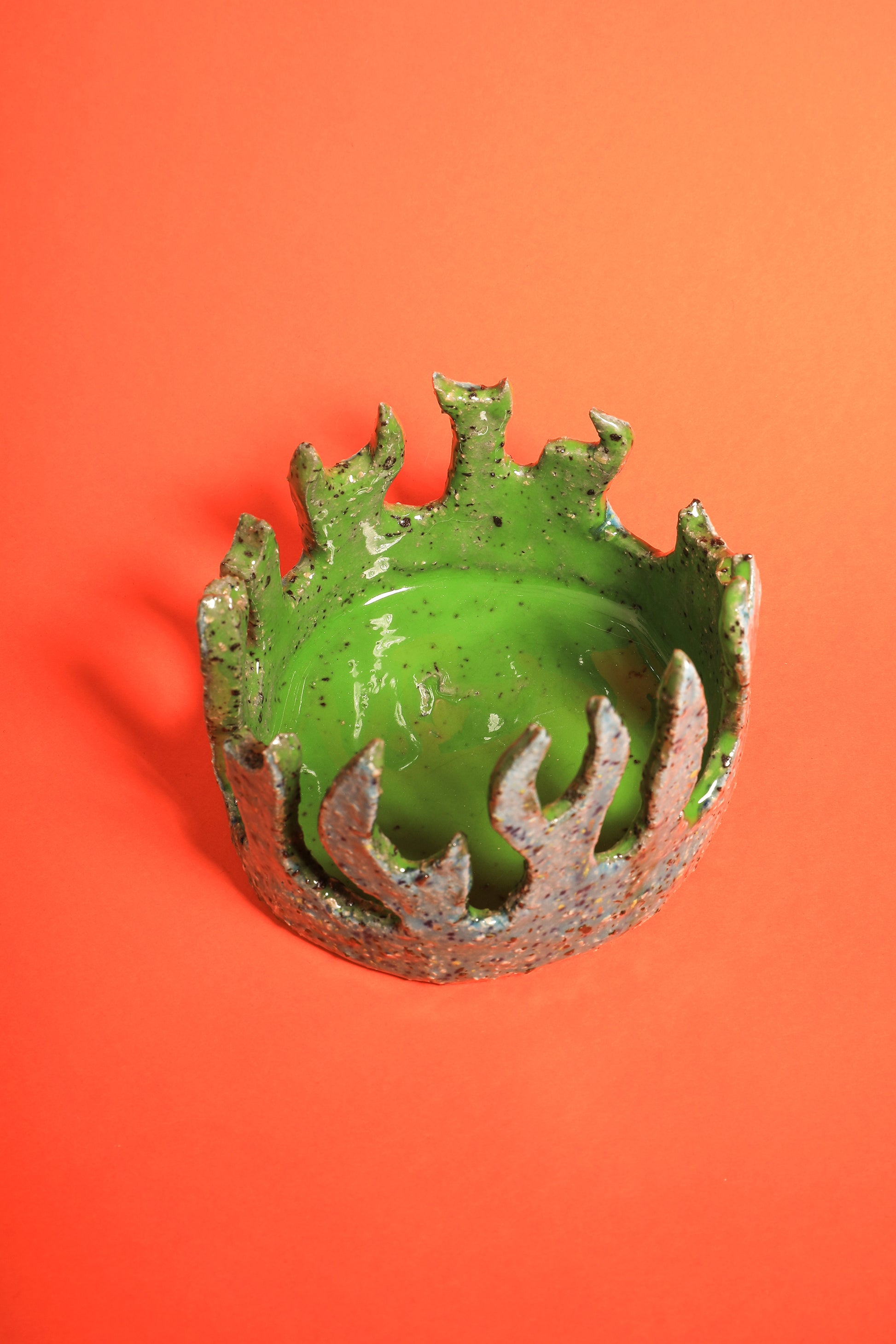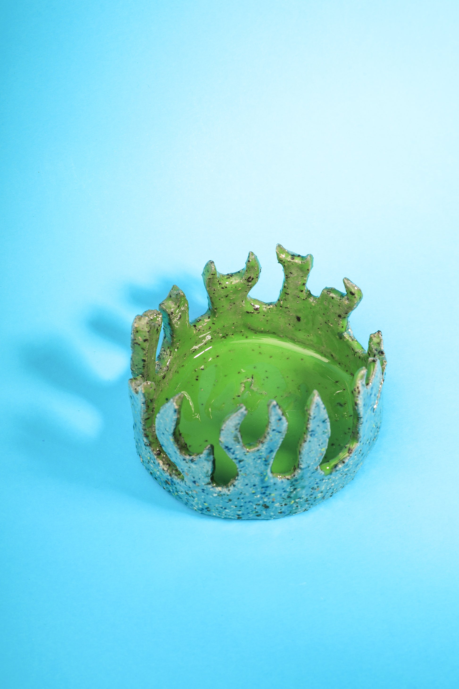 Inspiré par l’univers du skate et l’audace graphique de Thrasher, ce pot allie énergie brute et poésie artisanale. Il incarne aussi une histoire personnelle : celle des débuts de Courte Frange, où les flammes ont marqué la première étincelle créative. Aujourd’hui, la série renaît, déclinée en nouvelles couleurs, comme une promesse de renouveau et d’exploration.