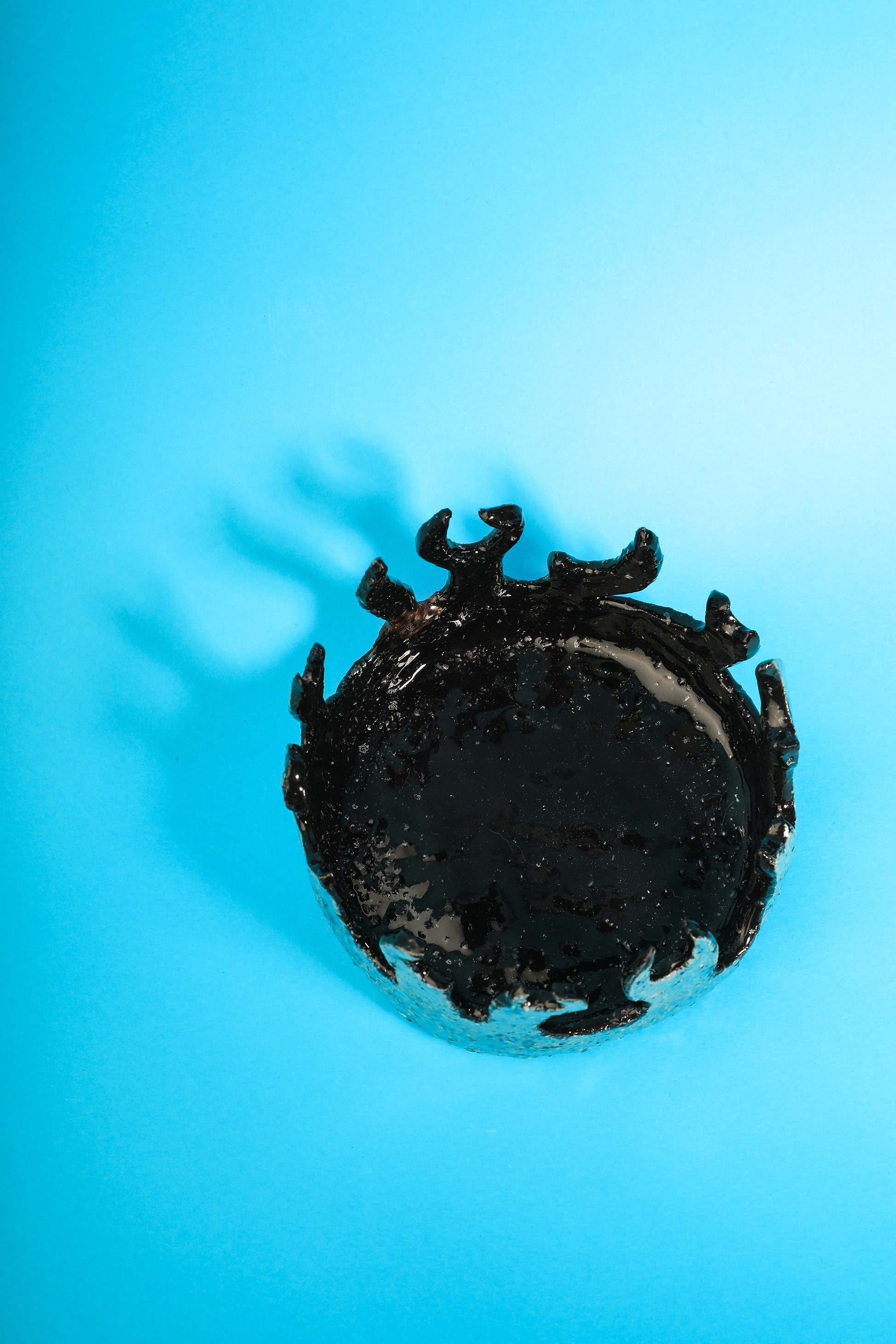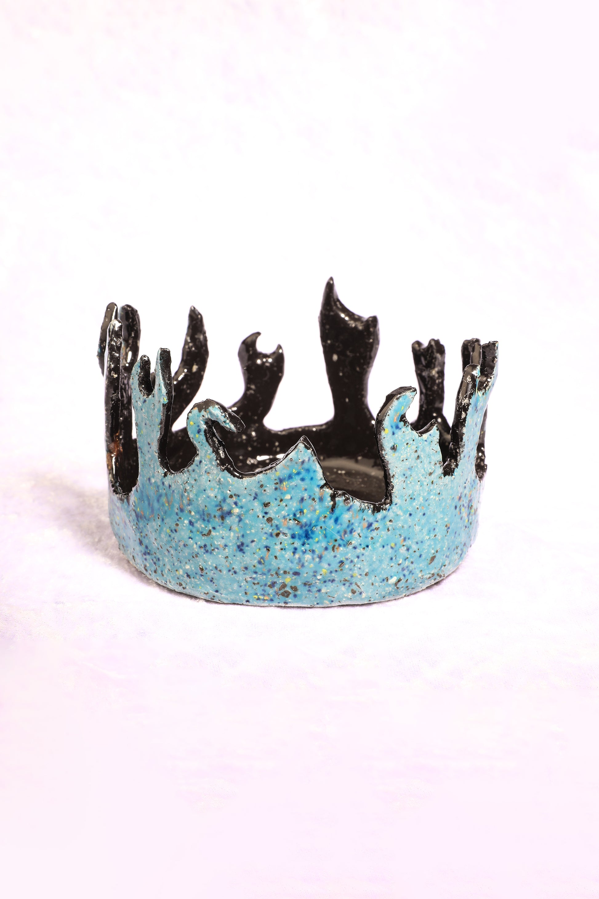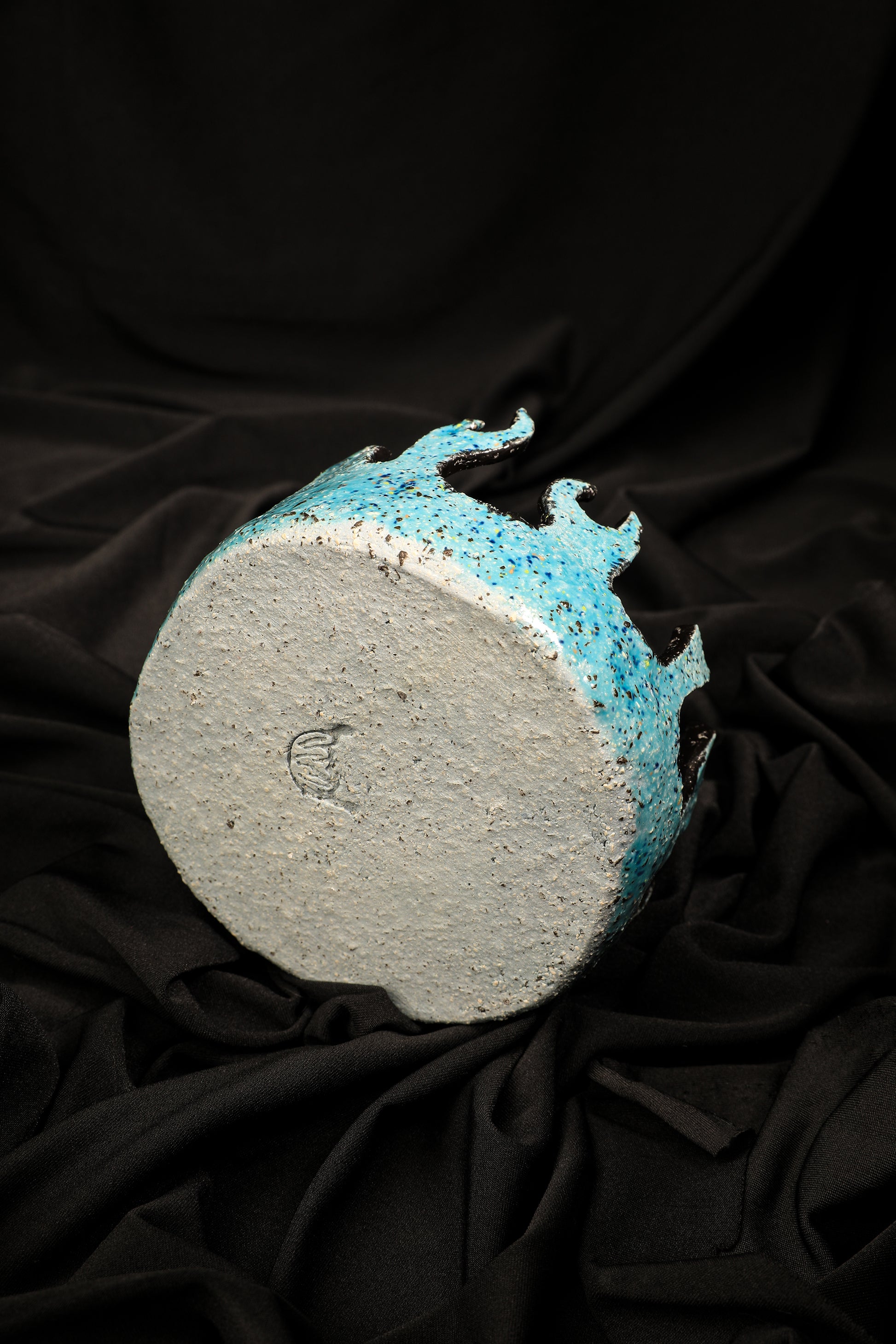 Composition : Terre bleu / émaux bleu et noir moucheté aux teintes flamboyantes