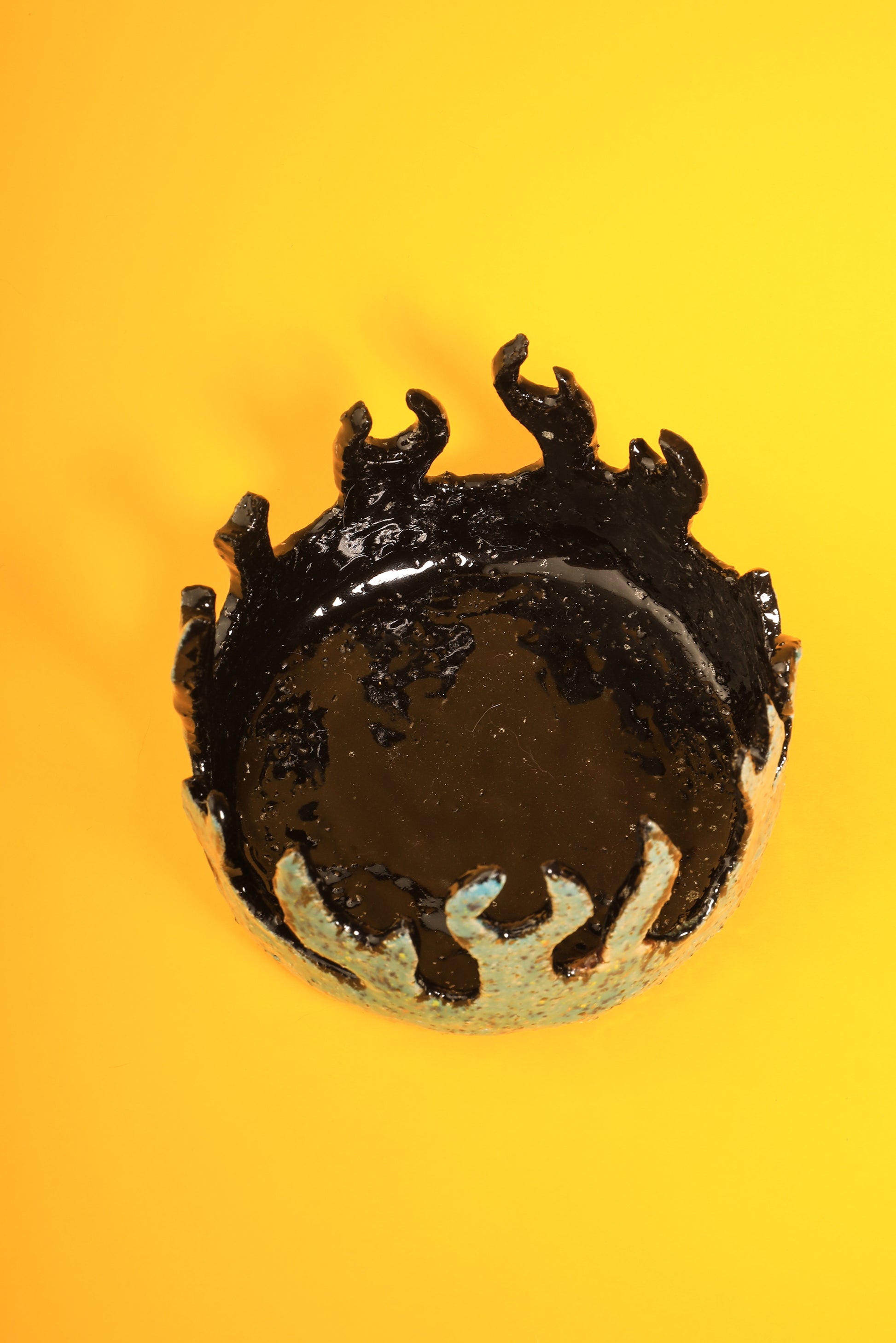 Inspiré par l'univers du skate et l'audace graphique de Thrasher, ce pot allie énergie brute et poésie artisanale. Il incarne aussi une histoire personnelle : celle des débuts de Courte Frange, où les flammes ont marqué la première étincelle créative. Aujourd'hui, la série renaît, déclinée en nouvelles couleurs, comme une promesse de renouveau et d'exploration.