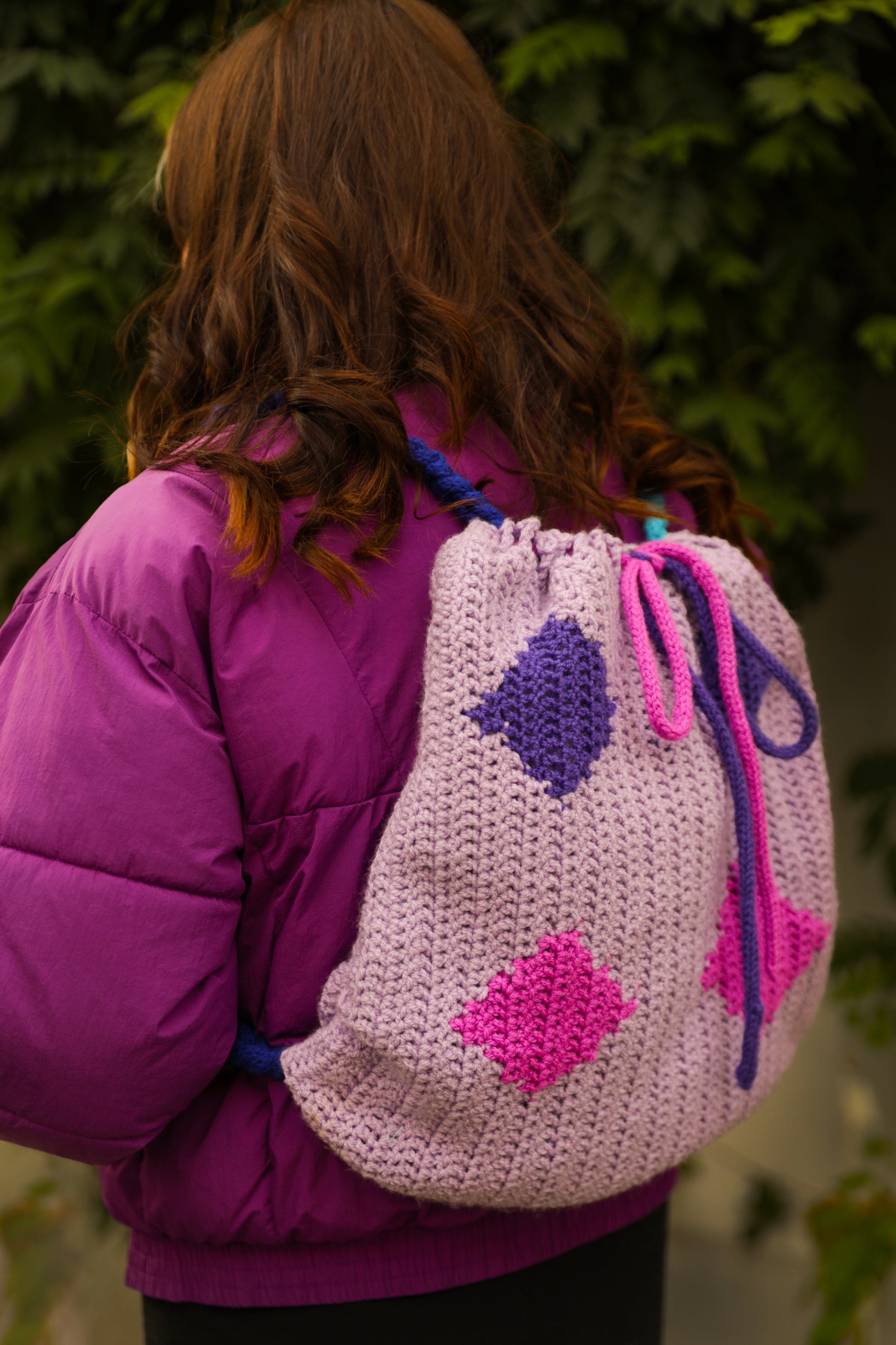 Ce sac à dos fait en crochet est une vrai pioche précieuse dans votre quotidien. Orné de losanges comme les carreaux d' un jeu de cartes, il évoque les parties de cartes improvisées sur un coin de table, les jeux d' enfance ou les paris un peu fou que l' on fait avec la vie.