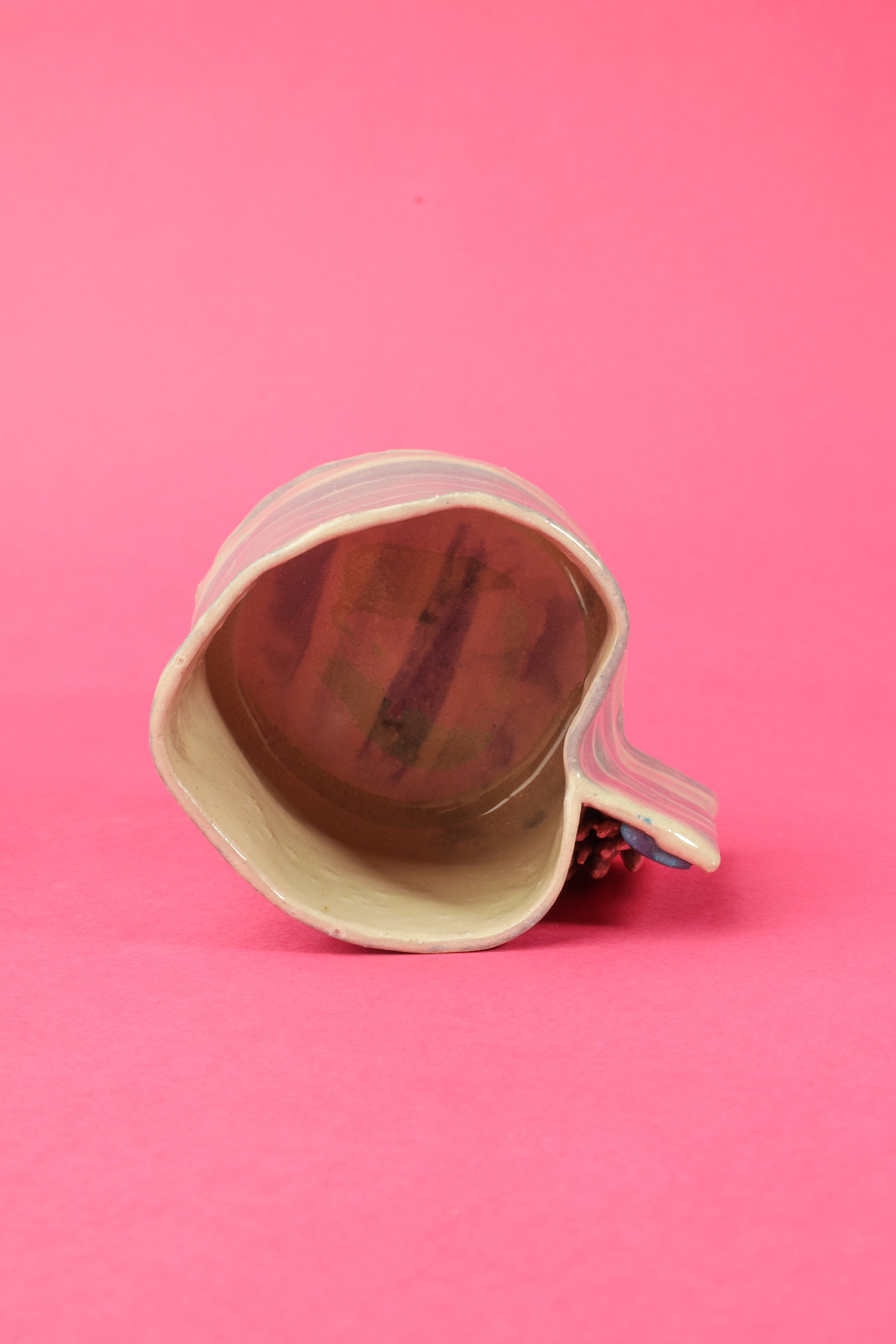 Cette tasse unique semble sortir tout droit d' une grotte en plein hiver. Son anse sculptée comme une stalactite fondue donne l' impression qu' un bout de grotte enchantée s' est glissé jusque dans votre cuisine. Chaque courbe, chaque pointe de cette anse fantaisiste évoque les formes naturelles que prend la glace quand elle danse lentement avec le temps.